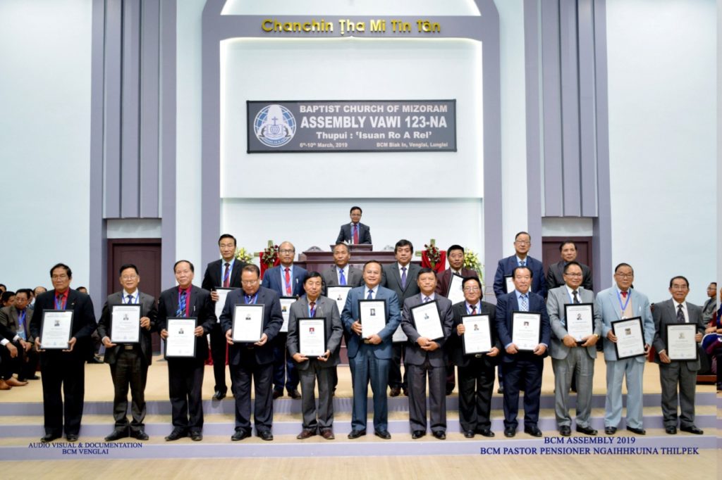 Inkhawmpui tawp zanah hian BCM Pastor, Pension-a chhuakte hnenah ngaihhruihna thu ziak (Citation) hlan an ni a, Pastor Pensioner 19 laiin a hmunah hian an rawn dawng thei a ni.