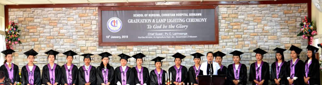 He Inkhawm hi Upa Dr. B. Laldinliana, Medical Superintendent, Christian Hospital-in a kaihruai a, Welcome address a pe bawk. Rev. ZD Lalrozuala, CHS Chaplain-in Devotions hun ahmang a, Pi Vanlalthlengliani, Principal, School of Nursing Serkawn-in Graduates te hmelhriattirna leh report tawi pein, Pi T. Rozami, Principal , School of Nursing Lunglei in zirlai tharte tana ‘Capping & Lamp Lighting’ hi a kaihruai thung a ni.