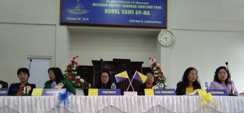 February 28, 2019 (Ningani)-a Mizoram Baptist Kohhran Hmeichhe Pawl (MBKHP) Rorel vawi 69-na, Mizoram Baptist Kohhran Biak In, Lamthuamthum, Haulawng-a neih chu tluang takin an zo ta a,ย rorel palai 502 an kal.