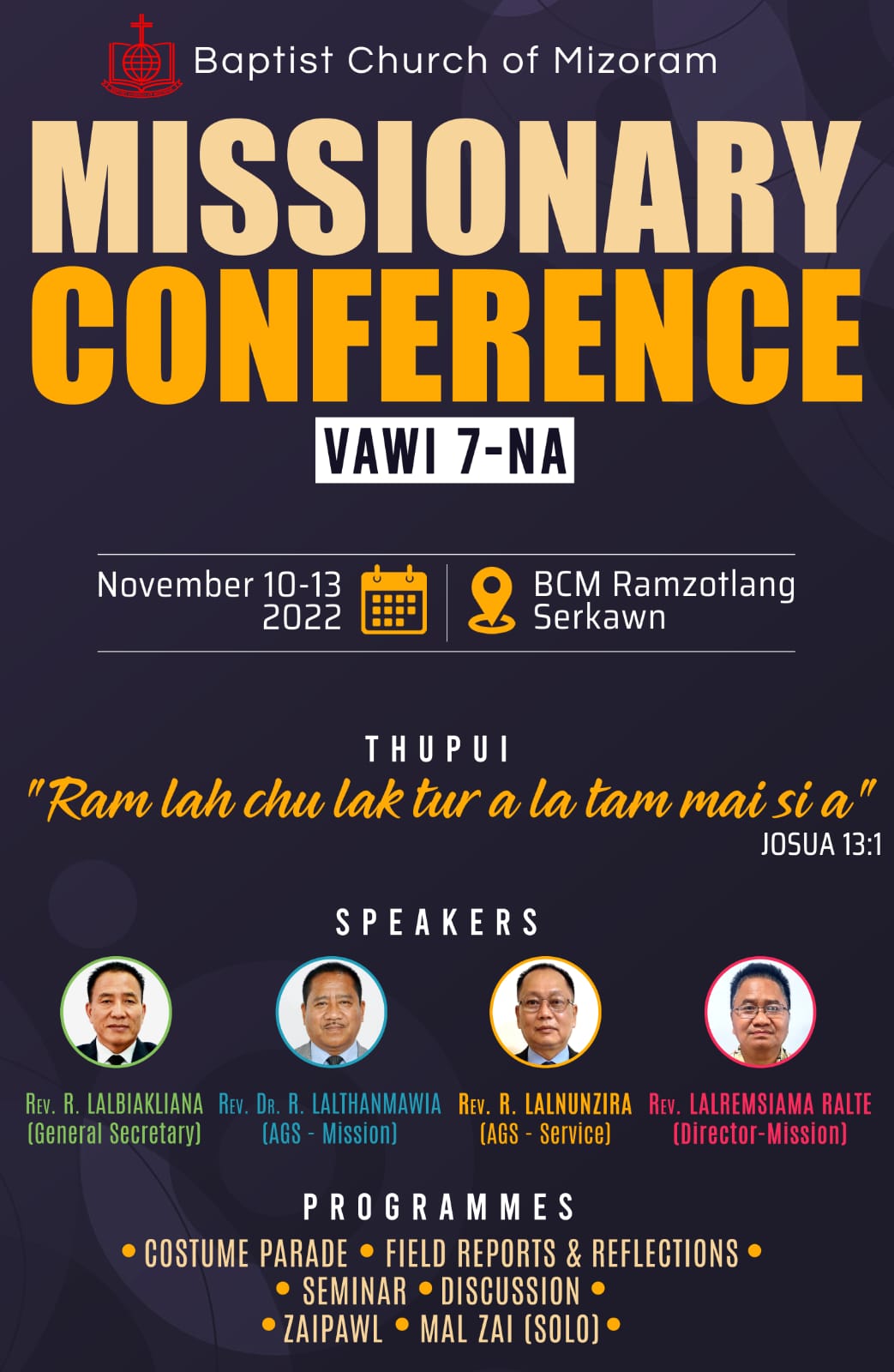 Tun kar Zirtawpni, (April 3, 2026) hi Khawvel puma Kristiante ni pawimawh ber zinga mi "Good Friday" a ni a, (April 5, Pathian Ni) hi Isua Krista Thawhlehna Ni (Easter Sunday) a ni bawk. He hun ropui tak hi Mizoram Baptist Kohhran chuan serhin Good Friday Eve zan atangin Zoram pumah Kohhran hoteโn Good Friday programme an hmang dawn a ni. Pathianni-ah Easter Sunday programme hman a ni leh ang. Hemi a nih avang hian kohhrana thawktute pawh April 2โ6 chhung Good Friday leh Easter chawlh an hmang dawn a, hemi hun chhung hian Hqrs Office dawr theih a ni dawn lo a ni. โฆ